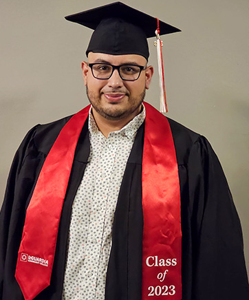 After beginning his college journey almost two decades ago, Marco is thrilled to be graduating from LaGuardia and transferring to the CUNY School for Professional Studies to pursue a Bachelor of Arts in Human Relations. “My LaGuardia journey has been a long one, spanning all the way back to 2005. Throughout this time, I’ve taken numerous breaks to discover myself. Yet no matter how long those breaks were, LaGuardia always welcomed me back with open arms.” Marco, who grew up in Cypress Hills, Brooklyn in his Hispanic family, describes struggling with motivation, self-doubt, and a lack of dedication to his studies. So instead, he chose to find work. For the past 13 years, Marco has worked with the homeless population in New York City. “I am assistant building director for Breaking Ground Inc., a non-profit organization that provides housing solutions and support services for the homeless.” In 2020, Marco found himself working at a COVID shelter at a hotel across the street from LaGuardia’s Main Building. “Each day, as I looked out of my office window, the sight of the LaGuardia sign served as a constant reminder. I would think to myself, ‘why didn’t I finish? I’m intelligent, and I have a tremendous support system. So why not?’” Around this time, Marco was realizing that career advancement would be challenging without a college degree. “I had reached a plateau in my job where further progress was unattainable without a degree.” So, in 2021, he returned to LaGuardia and finished his associate degree. He credits his wife, Jennie, a graduate of LaGuardia Community College and Hunter College. “Our beautiful baby girl, Norah, is a daily reminder of the importance of perseverance, hard work, and family.” Marco’s long-term goal is to earn a master’s in social work and become a licensed social worker, so that he can become a substance abuse and mental illness counselor working with New York City’s homeless population and other communities in need.